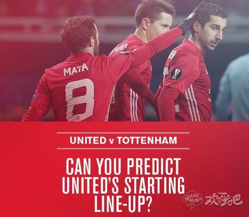 曼联公布了今晚对阵热刺的首发,伊布领衔中锋,马夏尔和姆希塔良在边路,博格巴打到前腰的位置。