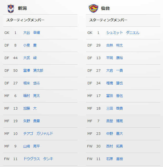 北京时间今天下午18点,日职联将上演一场焦点战,副班长新泻天鹅坐镇主场迎接中游球队仙台七夕的挑战,目前双方首发已经给出,具体如下: