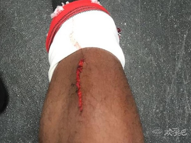 圣徒的中场新援勒米纳在 Instagram 上传了一张受伤的照片,这道长长的口子是西汉姆联中场诺布尔留下的。