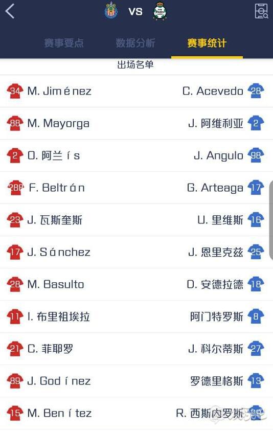 【墨西哥杯首发】瓜达拉哈拉VS桑托斯拉古纳:双方均全替补出战