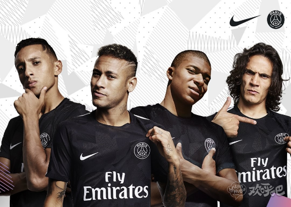 欢呼吧9月4日讯 近日,耐克正式发布巴黎圣日耳曼俱乐部2017/18赛季第二客场球衣——黑色外观加上迷彩暗纹,时尚感十足,再配上特别版印字。