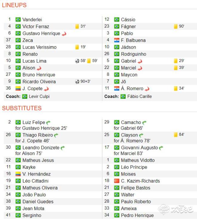 桑托斯主场2-0完胜领头羊科林蒂安,联赛15轮保持不败!