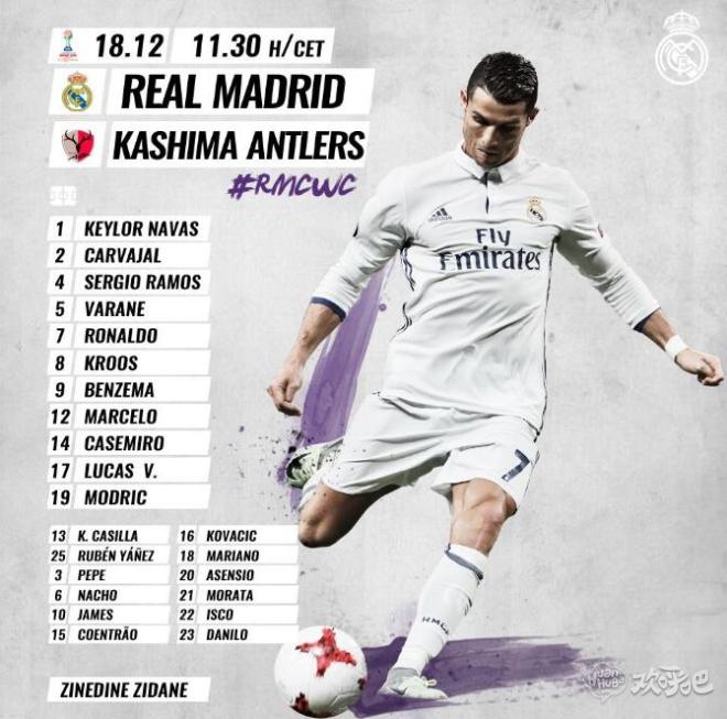 【世俱杯首发】C罗、拉莫斯领衔皇家马德里世俱杯首发