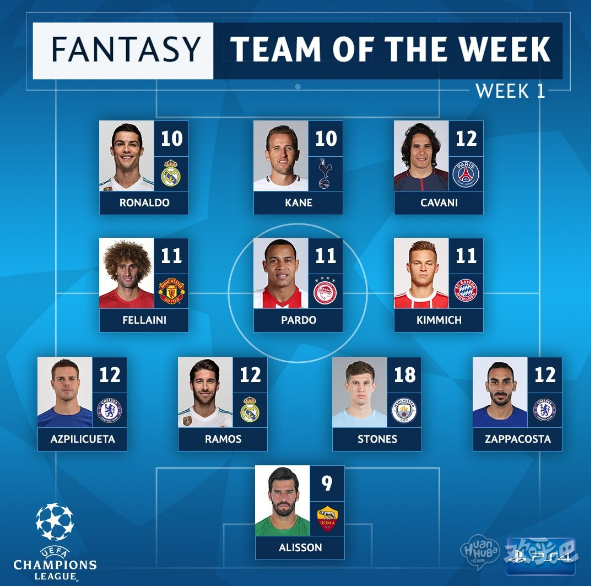 欧冠首轮最佳阵容:C罗、凯恩在列,梅西、内马尔落选