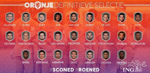 荷兰队大名单:斯内德领衔