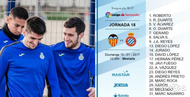 西班牙人目前伤兵满营,前锋皮亚蒂(13场5球7助攻)遭遇禁赛,巴普蒂斯唐(13场3球3助攻)、凯塞多(12场1球)、中场洛佩斯(10场)和桑切斯(16场1球)均因伤休战。中场迪奥普(12场)目前正在跟随塞内加尔国家队征战非洲杯为此将继续缺战。