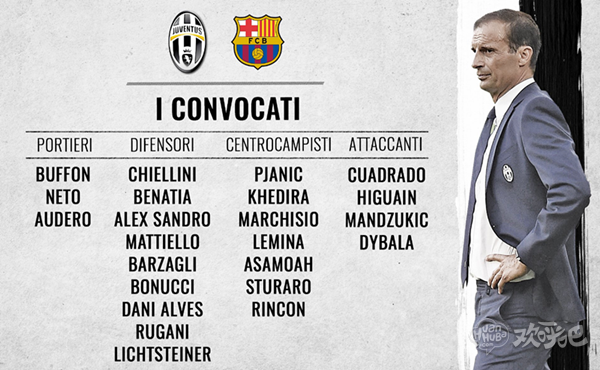 尤文对阵巴萨大名单