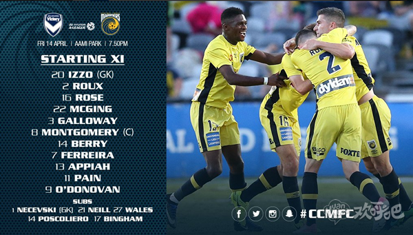 北京时间今天17点50分,澳超常规赛最后一轮首场比赛打响,墨尔本胜利将在主场迎来中央海岸水手,目前双方首发已经出炉,双方基本派出了全主力应战。
