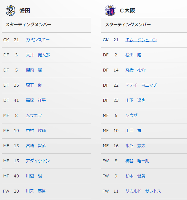 【日职首发】中村俊辅领衔磐田喜悦战大阪樱花首发