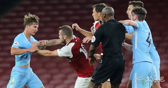 周一阿森纳U23与曼城U23的一场预备队比赛中,大师兄威尔希尔未能在场上做出良好的榜样,下半场与对手发生冲突被红牌驱逐出场!