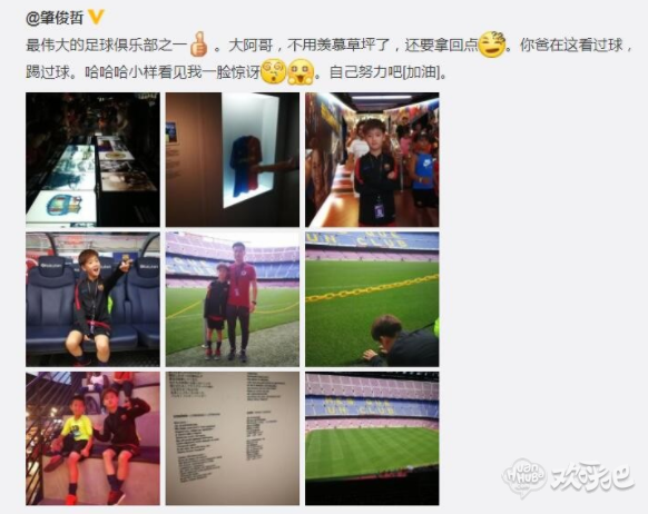 辽足名宿、前国脚肇俊哲近日带领儿子参观了巴萨罗那的主场诺坎普球场,并对儿子寄语。