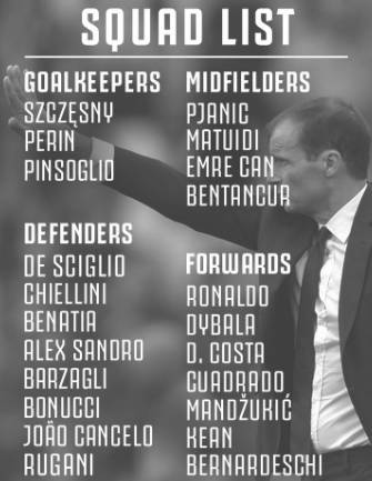 前锋:C罗、迪巴拉、道格拉斯-科斯塔、夸德拉多、曼朱基奇、小基恩、贝尔纳德斯基