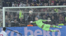 西甲联赛第9轮上演榜首大战,巴萨主场迎战塞维利亚,最终巴萨4-2战胜对手,重新夺回榜首。本场比赛特尔施特根表现十分抢眼,下半场20多分钟内连续两次上演神级2连扑。