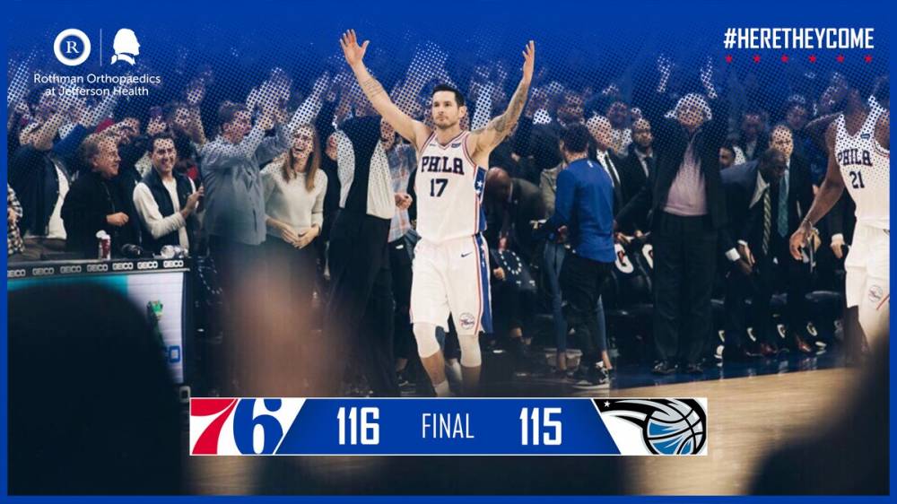 第三节魔术疯狂反扑并依靠一波13-2的攻势将分差追至1分,末节魔术在一度落后11分的情况下凭借连续三分一度反超比分,不过雷迪克最后命中致命三分帮助76人夺回领先奠定胜局。最终,76人116-115险胜魔术拿下比赛。
