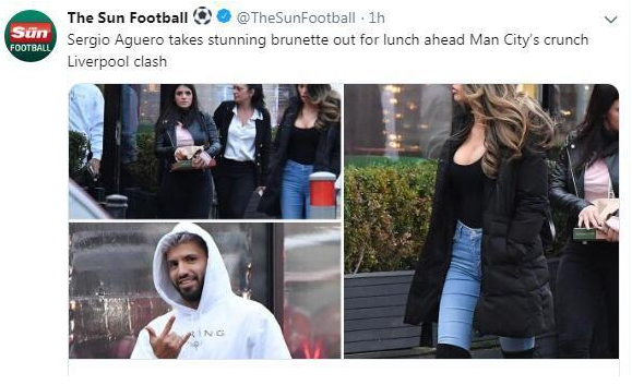 阿圭罗伤愈复出后,场内场外都有收获,场外也“建功”了。近日他和一名棕发且“波涛汹涌”的女郎外出吃午饭,身边还有其他女伴。阿圭罗穿着白色的套头衫,并不介意被拍到,还对镜头微笑着做出庆祝动作。