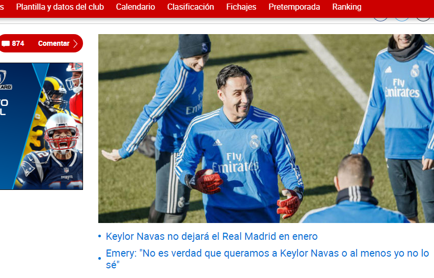 据西班牙媒体报道,皇马门将纳瓦斯已与俱乐部续约至2021,尽管此前盛传纳瓦斯将于1月份离队,但马卡表示,球员并无冬窗离队的想法。早在几周前,纳瓦斯就与皇马方面续签了合同,双方在原合同的基础上延长一年,合约直至2021年6月到期,续约后球员的年薪为500万欧元。