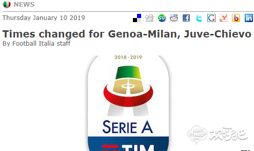 热那亚vsAC米兰的开球时间将从在意大利当地时间1月21日21:00(北京时间1月22日凌晨4点)改到1月20日15:00(北京时间1月20日晚上10点)。尤文图斯vs切沃的开球时间将从1月21日19:00(北京时间1月22日凌晨2点)移至1月20日晚上20:30(北京时间1月21日凌晨3点30分)。