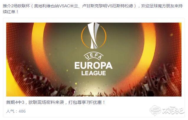 【奖堂福利】首期4中3,欧联现场密料来袭,打包尊享7折优惠!