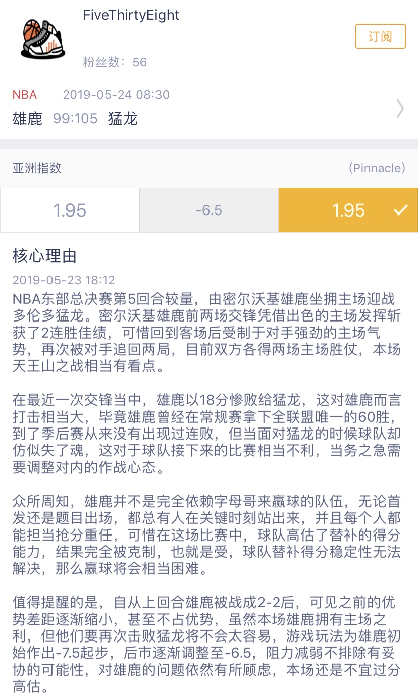 【冲击NBA总冠军】东部决赛G6 雄鹿vs猛龙,两大情报师必中之胆