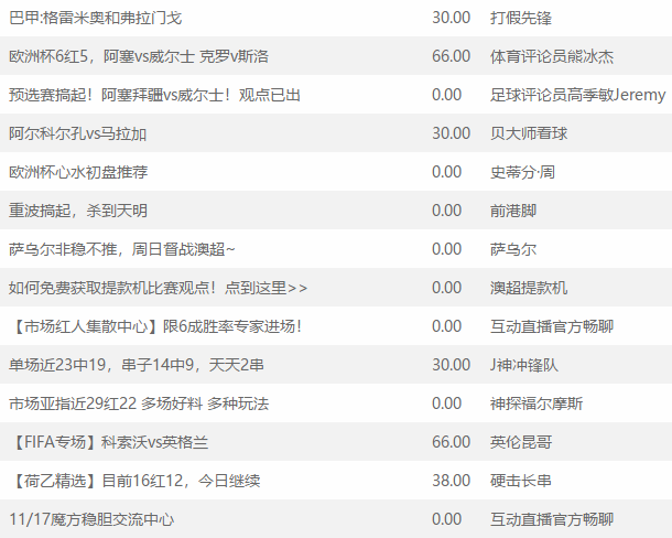 魔友们一起来欣赏一下【足球专家精选】的近日战绩