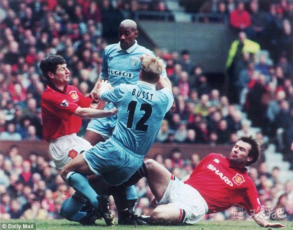 欢呼吧讯 1995-1996赛季曼联对阵考文垂的比赛中,巴斯特断腿的一幕让丹麦门神舒梅切尔都心惊胆寒。