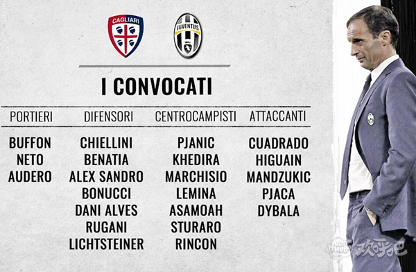 北京时间2月13日凌晨3点45分,尤文图斯将作客迎战卡利亚里,赛前尤文图斯官方宣布了球队本场比赛的大名单。