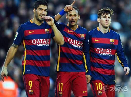 3、巴萨MSN:梅西、苏亚雷斯、内马尔