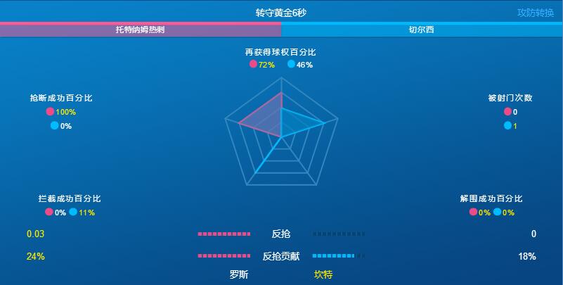 热刺VS切尔西本场比赛转守黄金6秒数据对比图